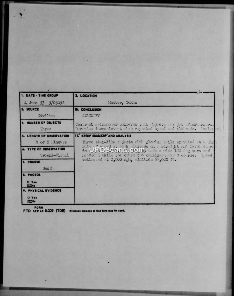 Air Intelligence Information Report — Unidentified Flying Objects Reporting, 4 June 1953