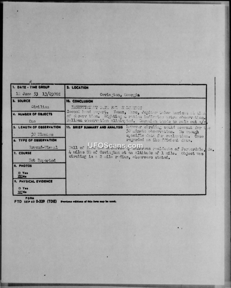 Incident Report — Covington, Georgia, 12 June 1953