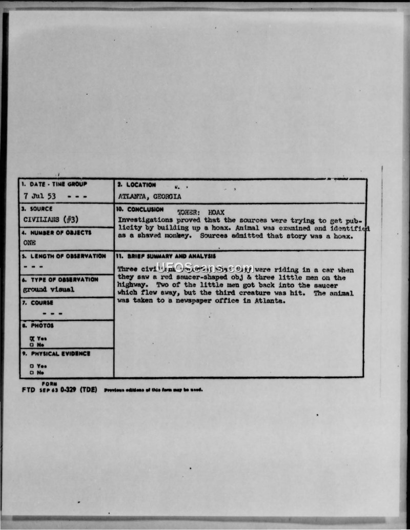 Incident Report: Atlanta, Georgia, 7 July 1953
