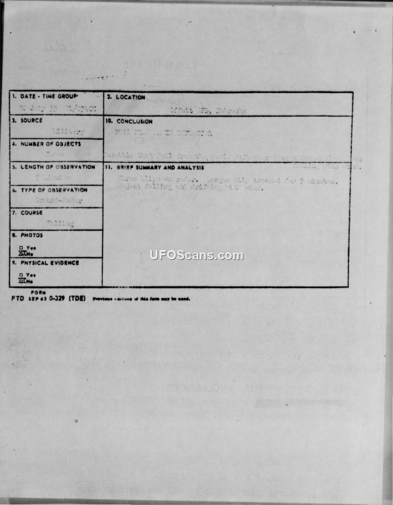 Air Intelligence Information Report: Unidentified Flying Object Sighting, Offutt AFB, 20 July 1953