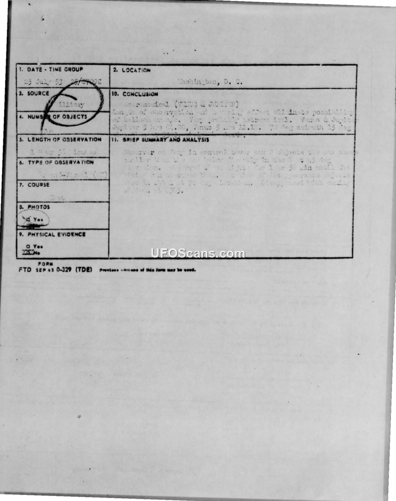 U.S. Air Force Technical Information Sheet — Sighting Report, 25 July 1953