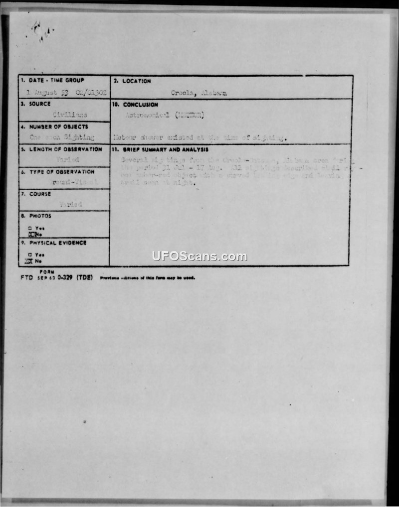 Incident Report — Creola and Satsuma, Alabama, July–August 1953