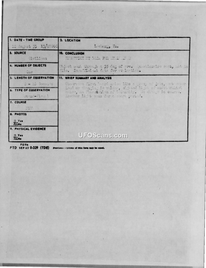 Sighting Report — Leesburg, Virginia, 12 August 1953