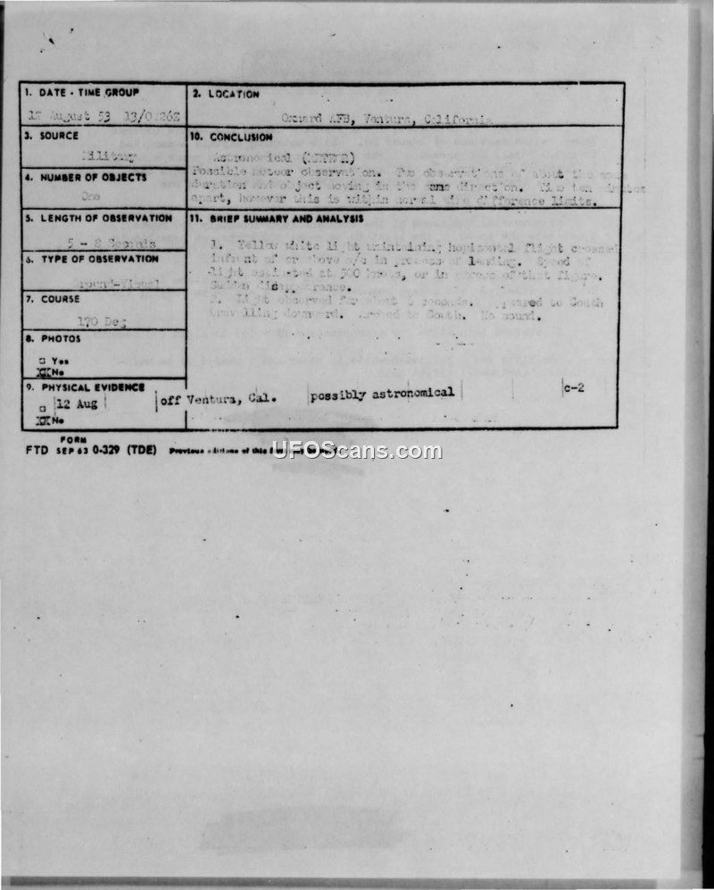 Air Intelligence Information Report — Flyobpt, Ventura, California, 12 August 1953