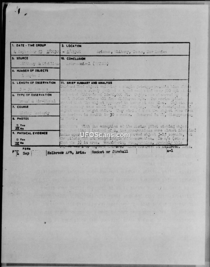 Unidentified Flying Object Sighting Report — Holbrook, Arizona, September 1953