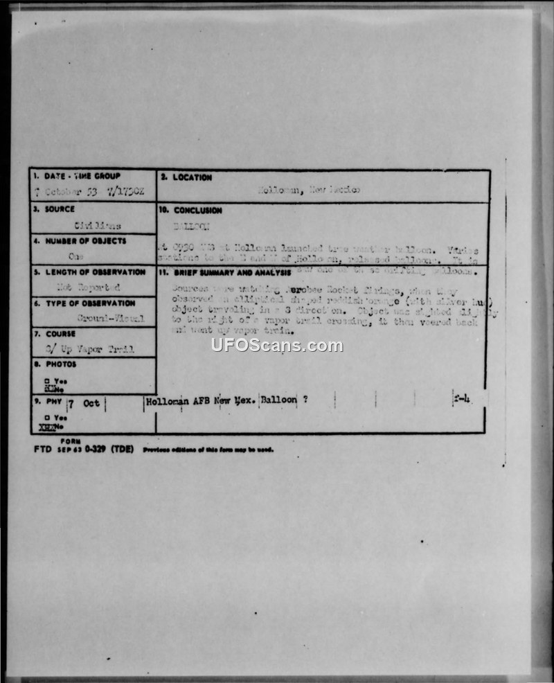 Incident Report: UFO Sighting at Holloman AFB, New Mexico, October 1953