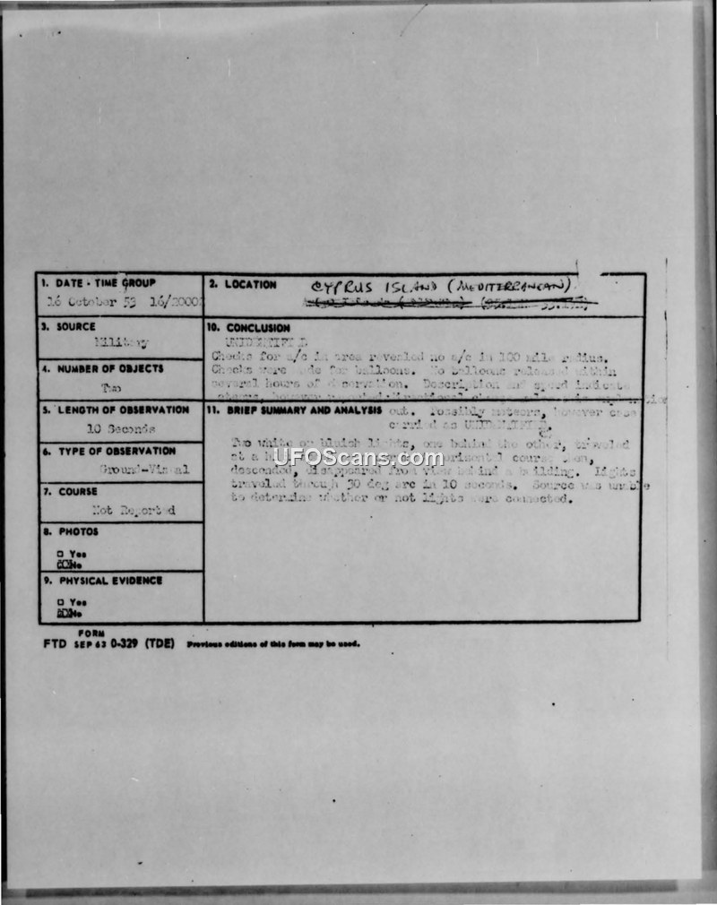 Incident Report: Unidentified Aerial Phenomena - Cyprus Island, 16 October 1953