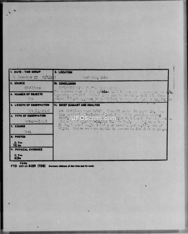 UNIDENTIFIED FLYING OBJECT REPORTEDLY SIGHTED NEAR WOOD COUNTY AIRPORT, OHIO