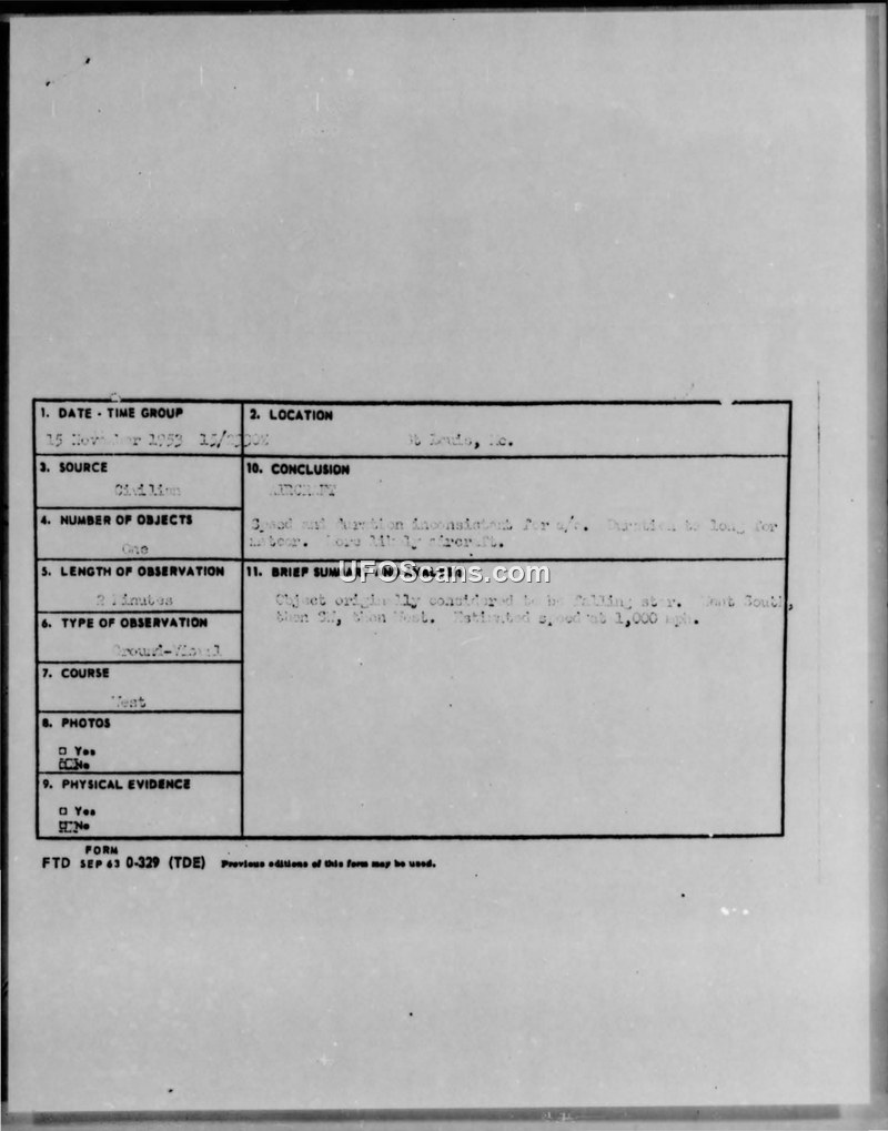 UFOB Report — St. Louis, Missouri, 15 November 1953