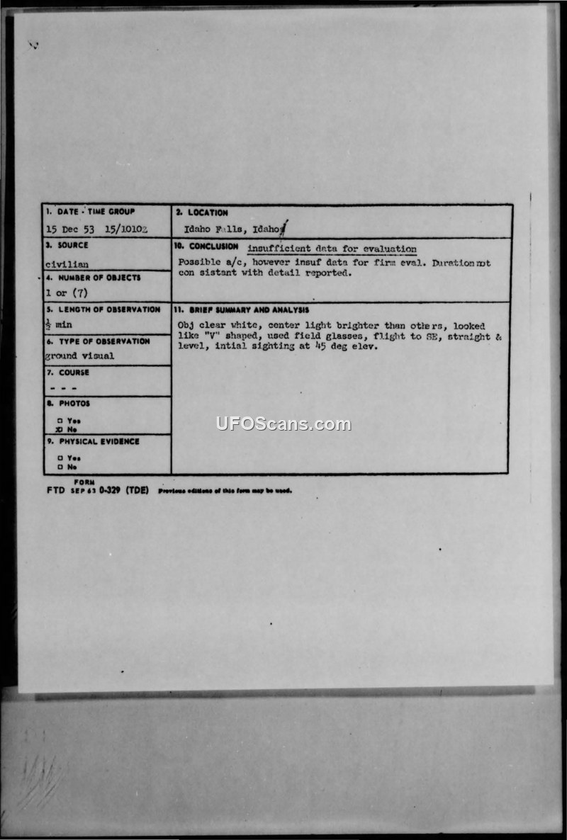 UFO Sighting Report — Idaho Falls, Idaho, 15 December 1953