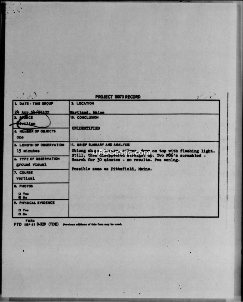 Project 10073 Record — Hartland, Maine, 24 April 1954