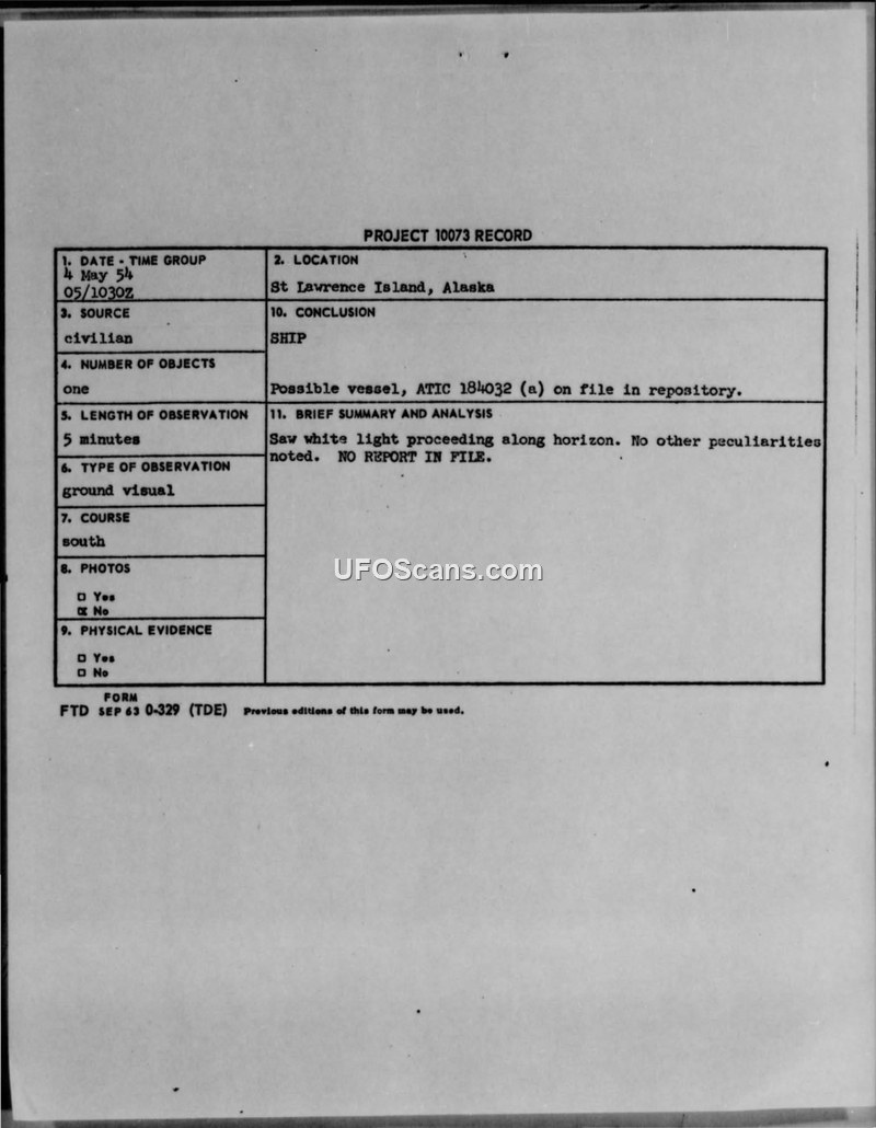 Project 10073 Record and Report of U.F.O. and Jet Activity Over Cincinnati Area