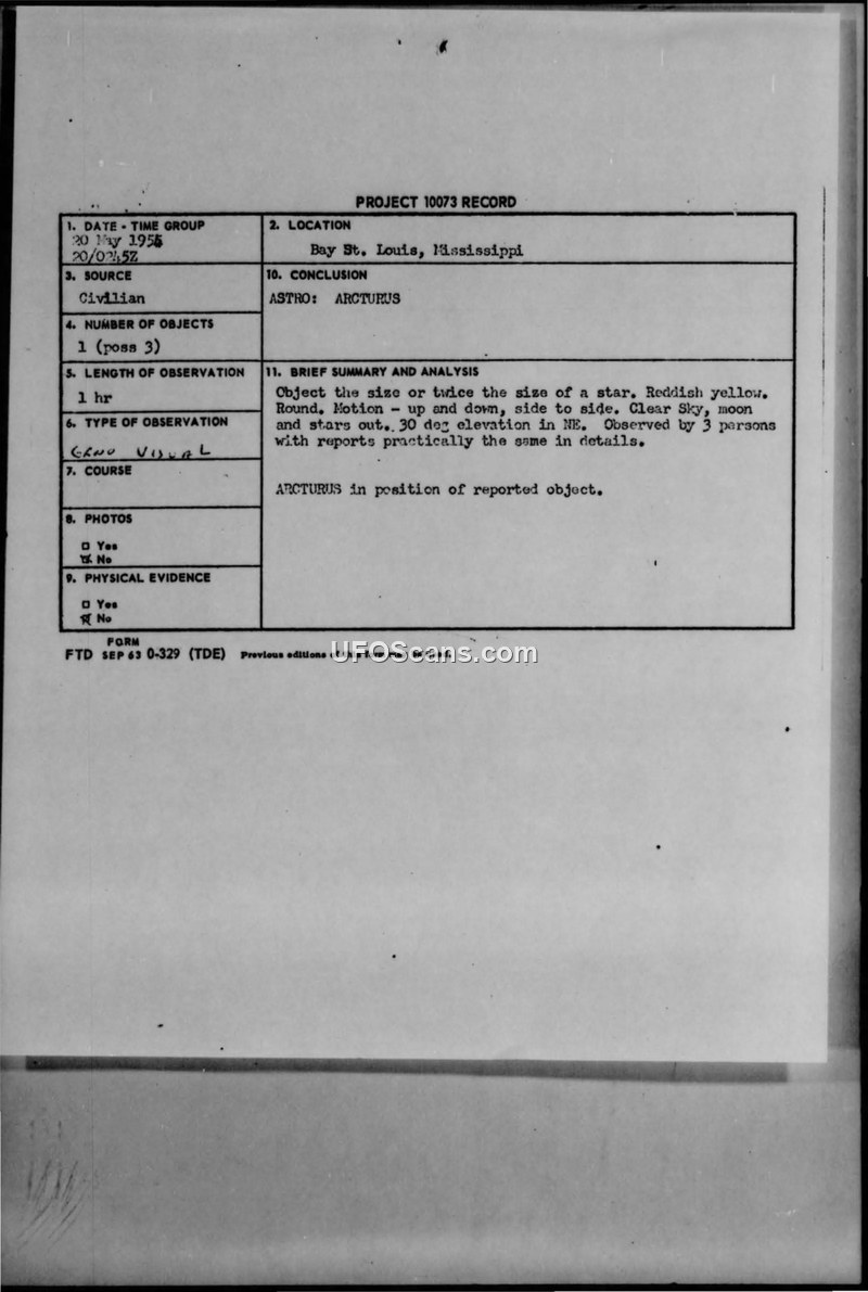 Project 10073 Record — Bay St. Louis, Mississippi, 19 May 1954