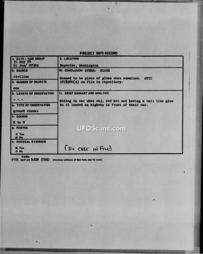 Project 10073 Record — Sighting at Miss City, Mississippi, 31 May 1954