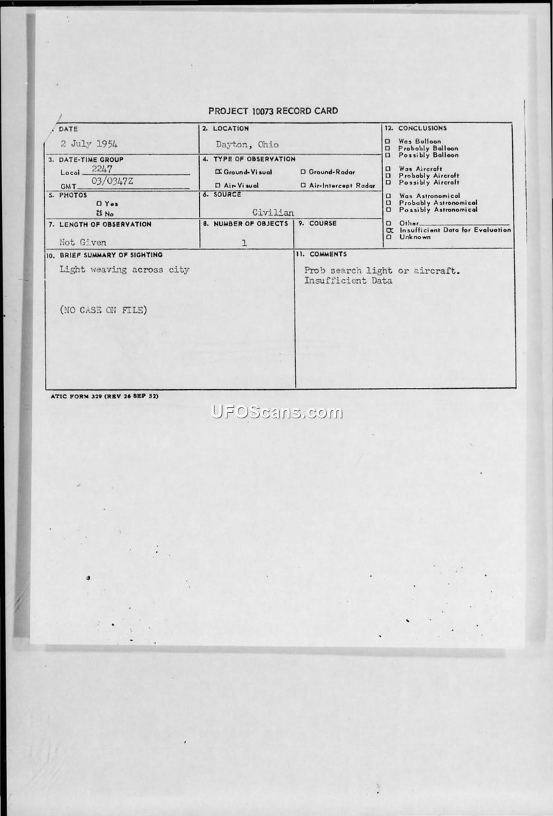 Air Intelligence Evaluation Record: Radar Sighting of Unidentified Returns, 3 July 1954