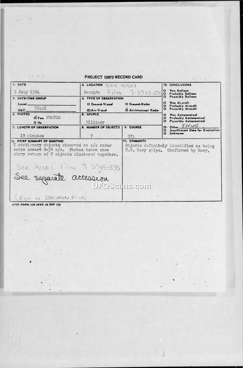 Project 10073 Record Card — Bermuda, 3 July 1954