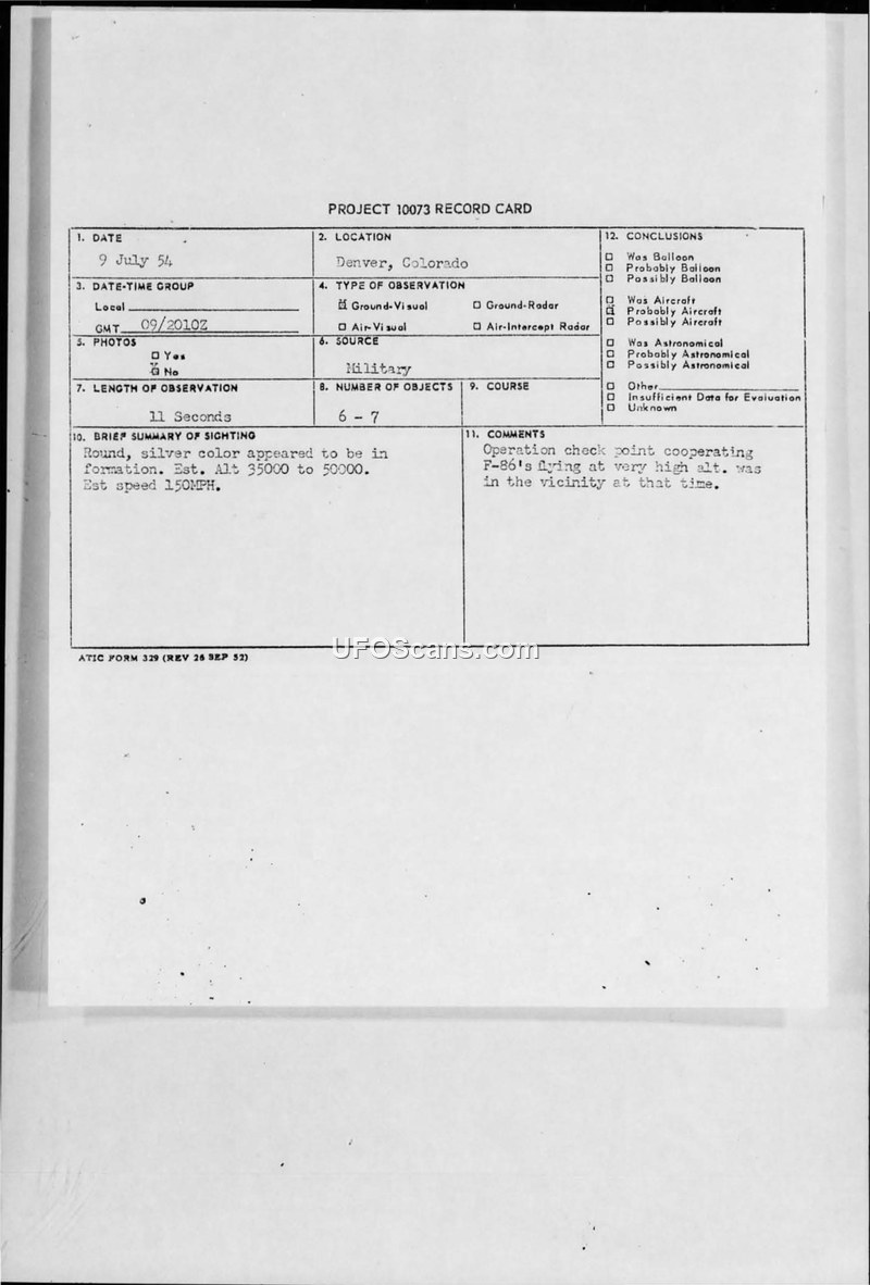 Project 10073 Record Card — Denver, Colorado, 9 July 1954