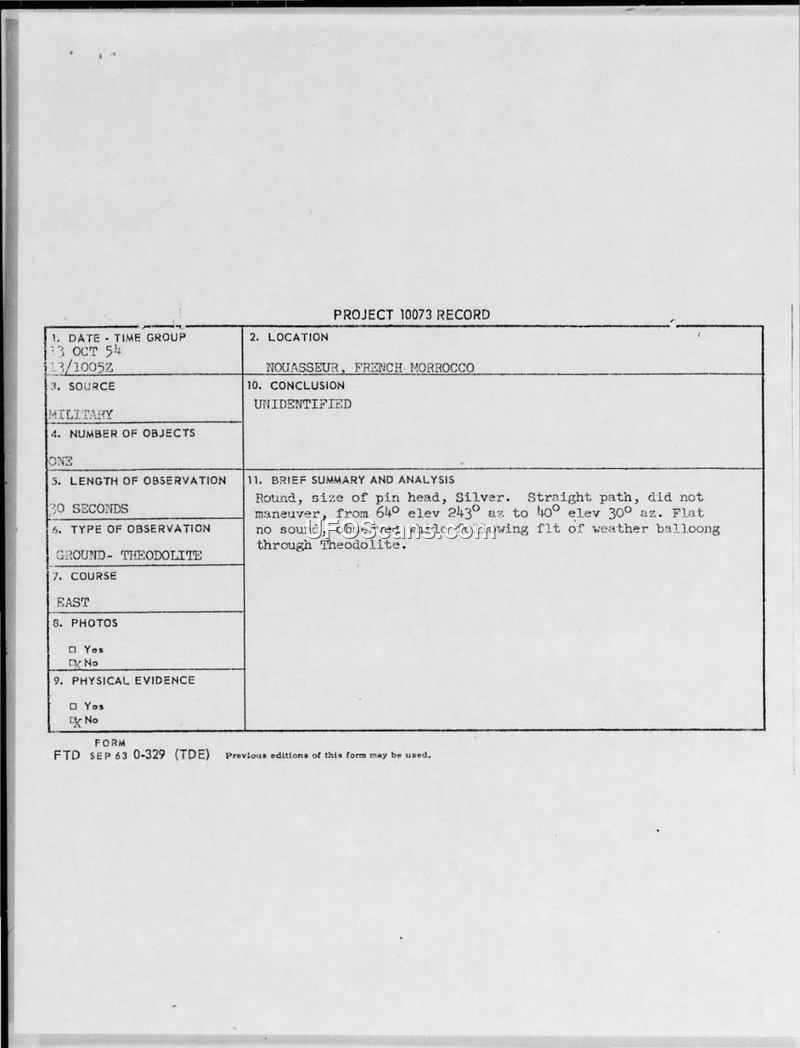 Project 10073 Record — Nouasseur, French Morocco, 13 October 1954