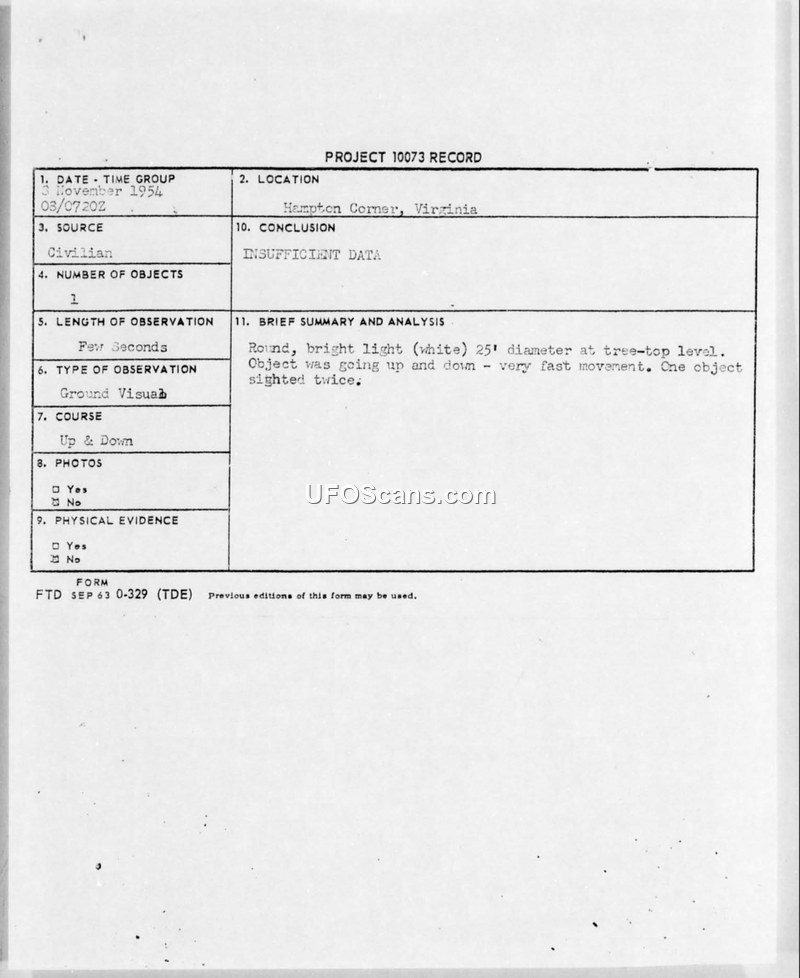 PROJECT 10073 RECORD - Hampton Corner, Virginia - 3 November 1954