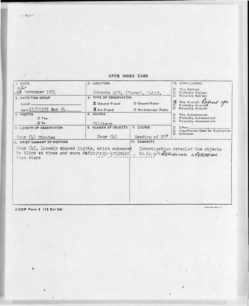 UFO Index Card and Supplement to AF Form 112 — Edwards AFB, 23 November 1954