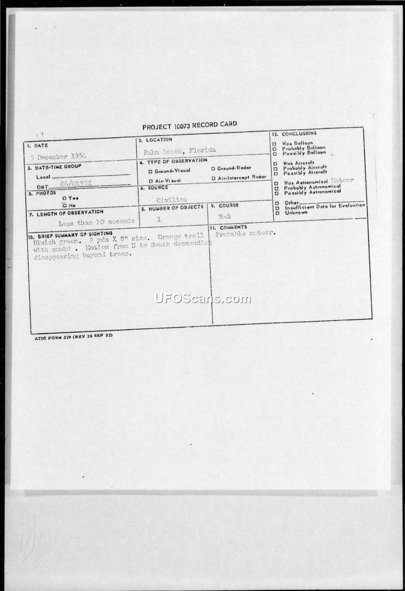 Project 10073 Record Cards and Incident Reports — Palm Beach, Florida, December 1954