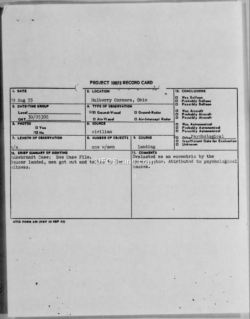 Project 10073 Record Card and Case File — Mulberry Corners, Ohio