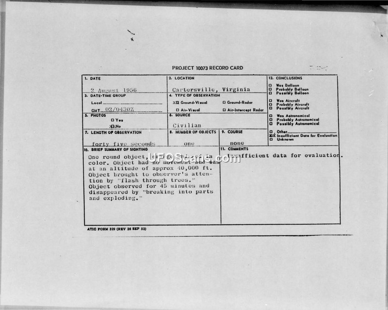 Project 10073 Record Card — Cartersville, Virginia, 2 August 1956