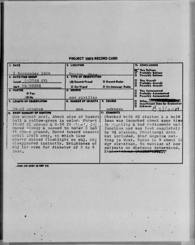 Project 10073 Record Cards and Related Correspondence — Dayton, Ohio, September 1956