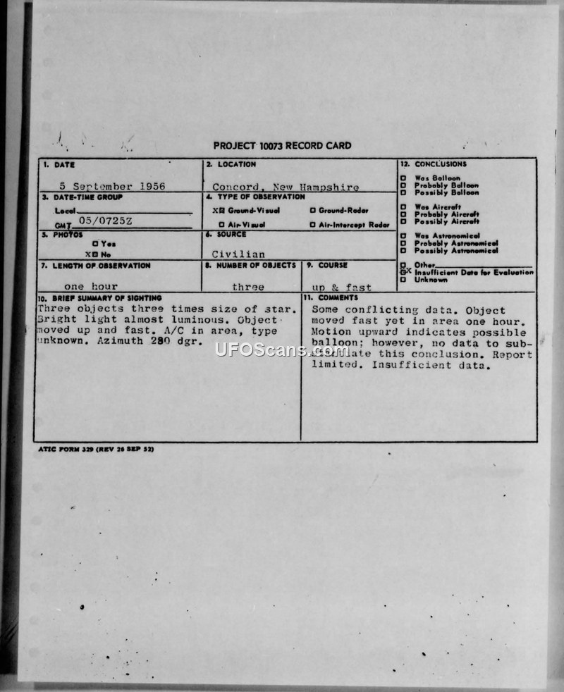 Project 10073 Record Card — Concord, New Hampshire, 5 September 1956