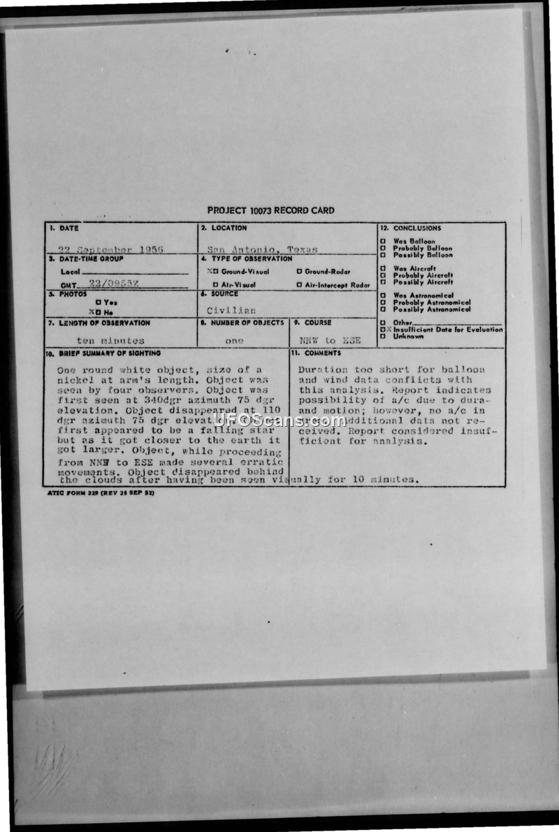PROJECT 10073 RECORD CARD - 22 September 1956