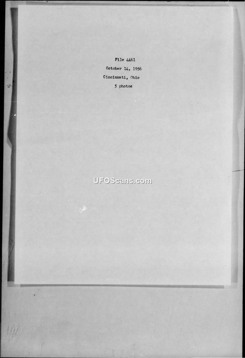File 4461 documents a 1956 sighting in Cincinnati, Ohio, supported by five photographs. The file contains no descriptive narrative or official analysis of the event.