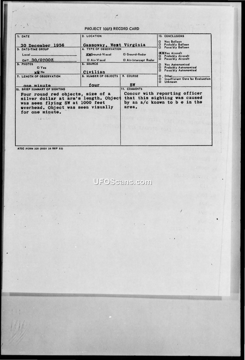 Project 10073 Record Card — Gassoway, West Virginia, 30 December 1956
