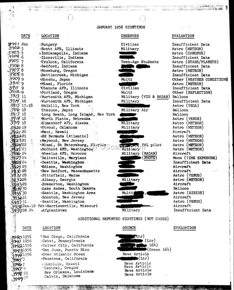 UAP Sighting Logs: January 1956 – December 1956