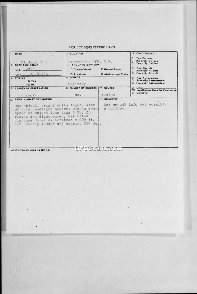 Project 10073 Record Cards and CIRVIS Reports - June 1957
