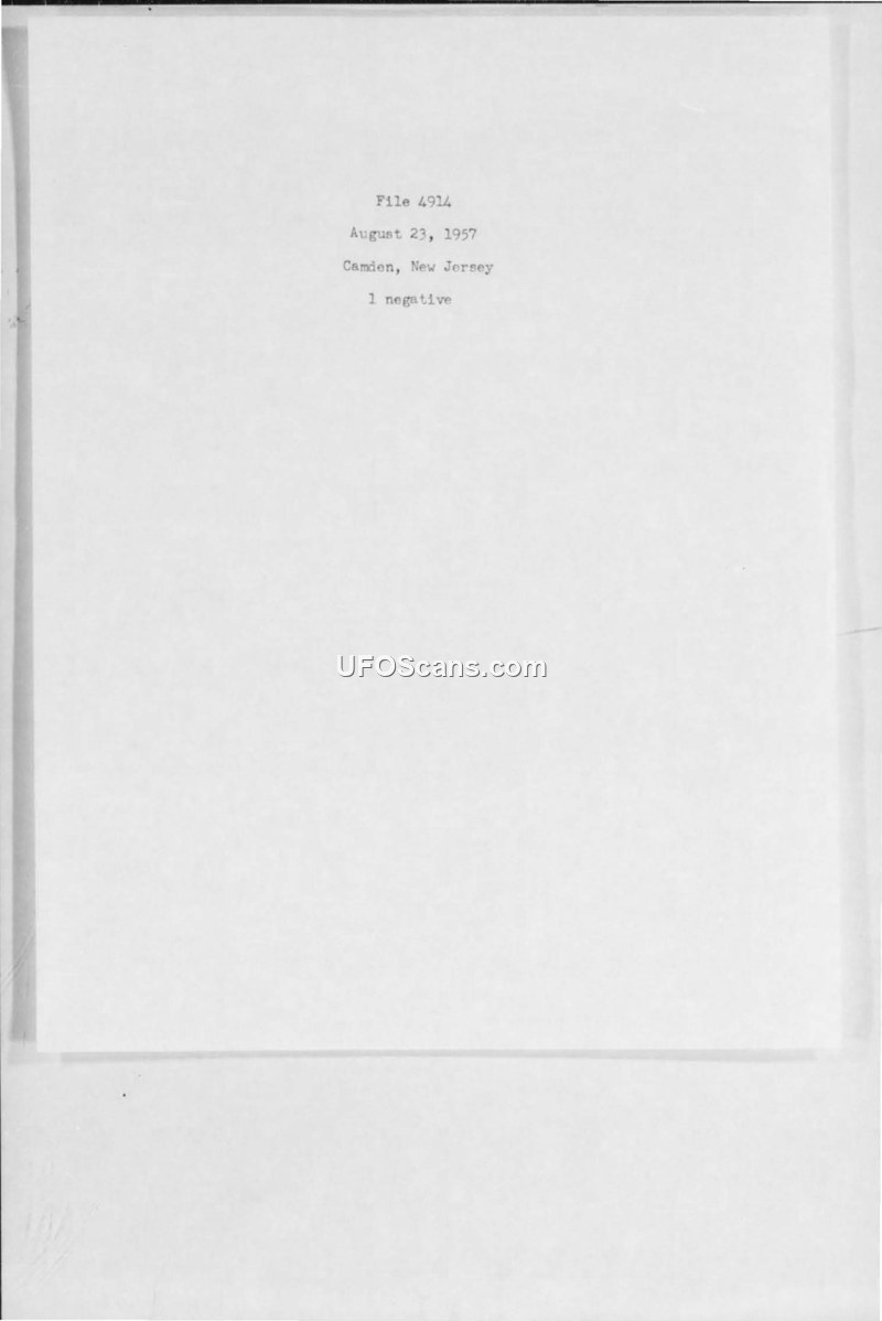 Unidentified Flying Object Sighted in Camden, N.J., on 23 August 1957