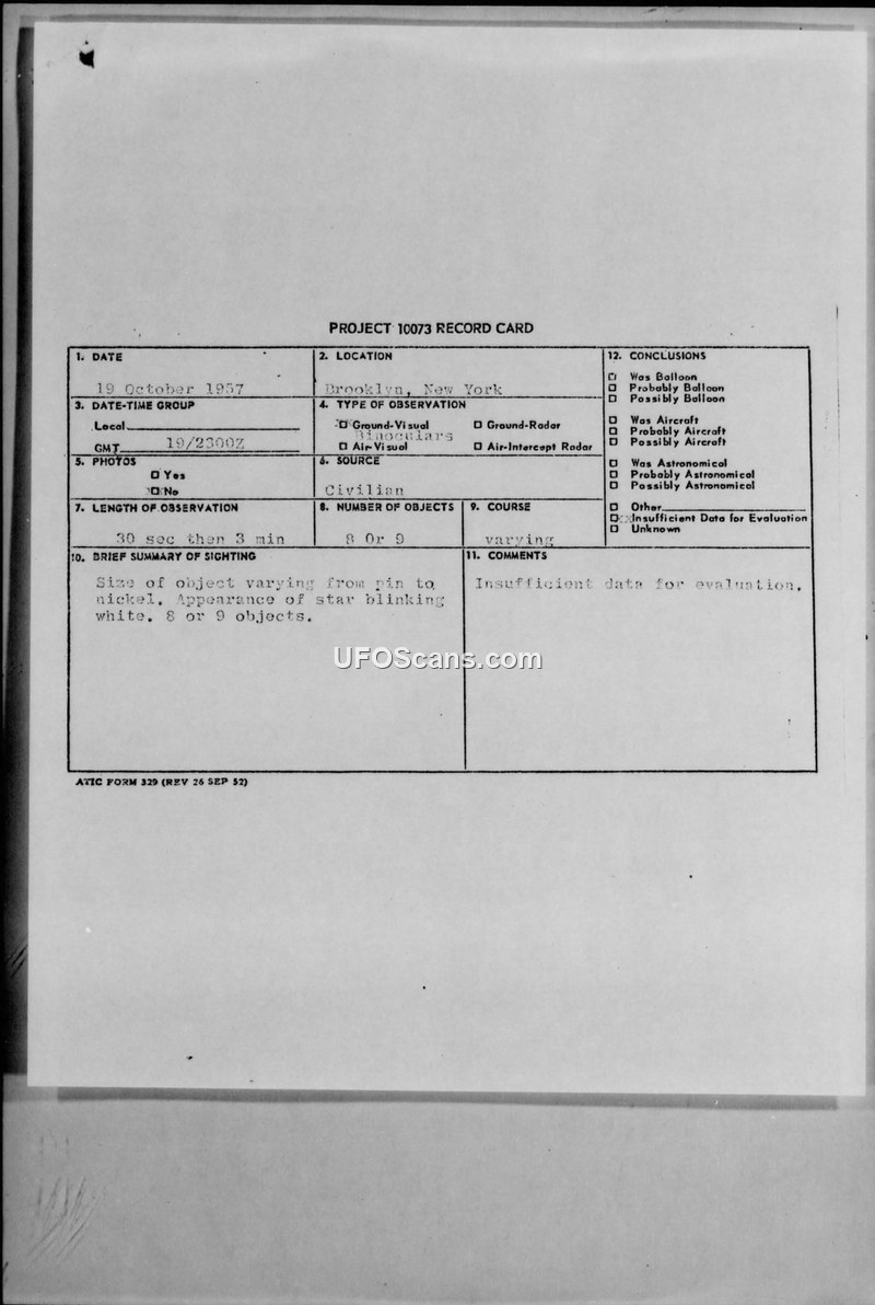 Project 10073 Record Card — Brooklyn, New York, 19 October 1957