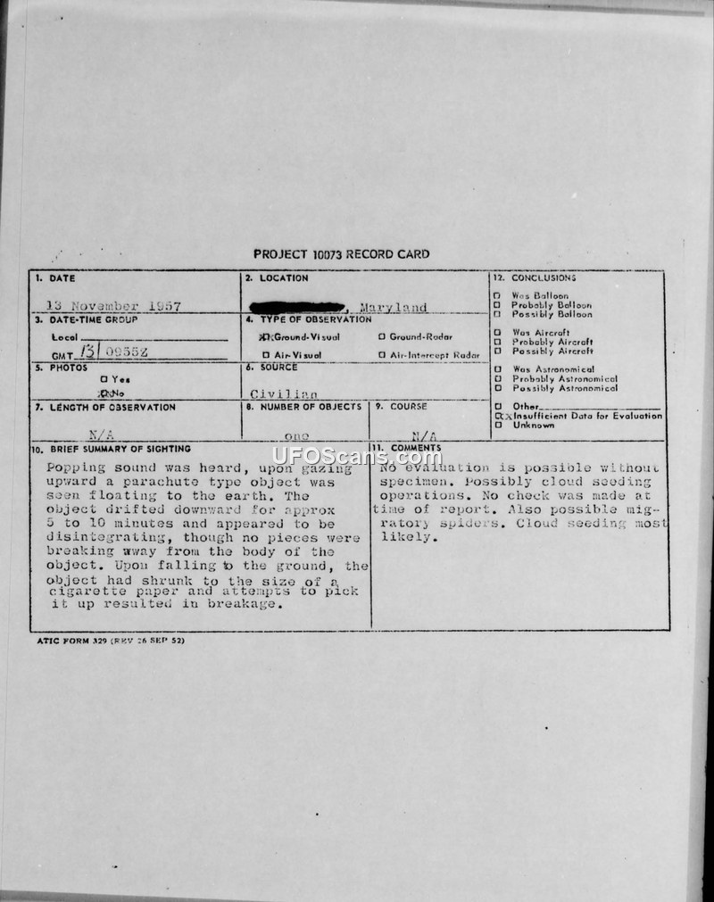UFO Report — Crownsville, Maryland, 13 November 1957