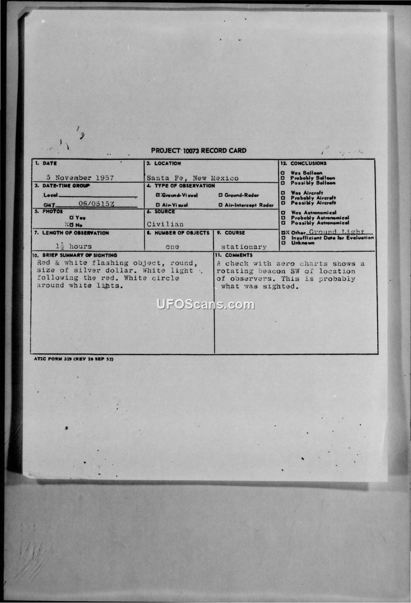 Project 10073 Record Card — Santa Fe, New Mexico, 5 November 1957
