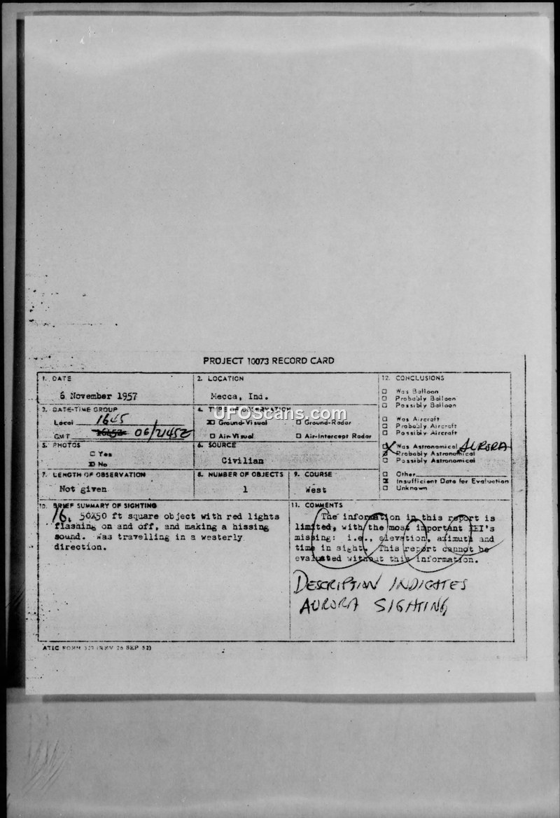 Project 10073 Record Card — Mecca, Ind., 6 November 1957