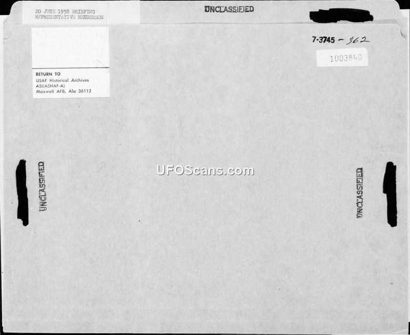 This collection of documents details a 1958 congressional inquiry initiated by Congressman John E. Henderson of Ohio, who requested information from the Department of Defense regarding the status and findings of the Air Force's Project Blue Book. Prompted by his reading of Edward J. Ruppelt's book on the subject, Henderson submitted a series of questions to Secretary of Defense Neil H. McElroy. These questions covered the operational status of Project Blue Book, statistical data on UFO sightings since 1953, the classification of 'unknowns,' and inquiries into scientific efforts to track and analyze UFOs, including radar, photography, and radiation testing. The Air Force, specifically the Air Technical Intelligence Center (ATIC), responded by providing detailed answers and preparing a briefing for Congressman Henderson and his colleagues. The correspondence reveals the Air Force's internal strategy for managing congressional interest, which included hand-carrying briefings and providing statistical summaries to address the Congressman's concerns. A memorandum for the record dated June 23, 1958, describes a briefing held on June 20, 1958, for several members of Congress. The briefing was intended to provide a comprehensive overview of the UFO program, clarify the Air Force's investigative procedures, and address the skepticism of some attendees. The Air Force reported that the briefing was successful in fostering confidence in the program and securing an agreement that undue publicity, such as formal congressional hearings, would be unwise. Furthermore, the documents highlight the Air Force's concern regarding a perceived 'concerted, wide-scale campaign' to pressure Congress on UFO matters. The Air Force recommended that the 'Air Force Semi-Annual UFO Report' be shared with key legislators to counter this pressure. The documents also include technical notes on the Air Force's analysis methods, including the use of radar, theodolites, and spectrographic instruments, and reiterate the official stance that unexplained sightings are generally indeterminate spots of light rather than evidence of extraterrestrial craft. The materials underscore the tension between congressional oversight and the Air Force's desire to manage public perception and maintain control over the UFO narrative.