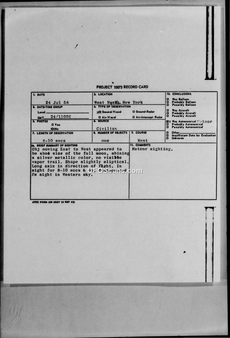 PROJECT 10073 RECORD CARD - 24 Jul 58