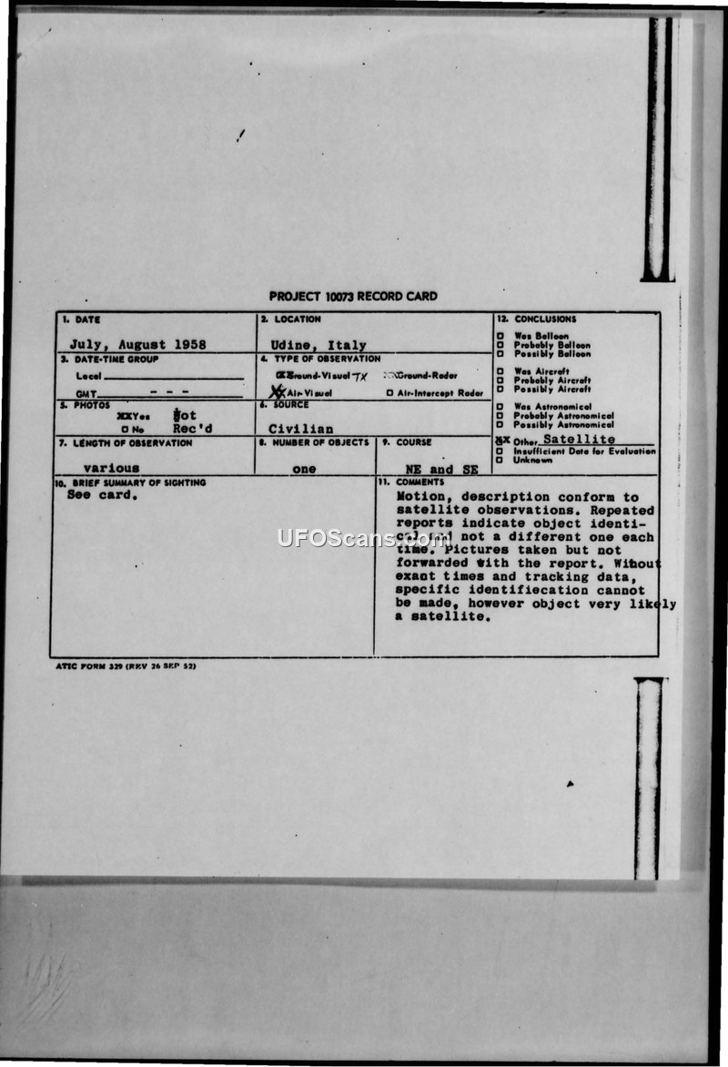Correspondence Regarding UFO Sightings in Chicago and Udine, 1958-1961