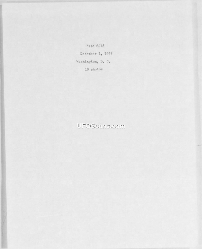 This document is a photographic file from the Foreign Technology Division dated December 1, 1958, containing 15 images of unidentified aerial phenomena. It provides visual evidence without accompanying narrative analysis or explanation.