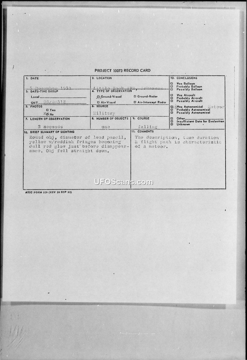 Multiple sightings reported at Little Rock AFB in December 1958 were investigated and determined to be meteors.