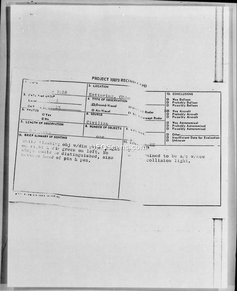 Project 10073 Record — Kettering, Ohio, October 30, 1958