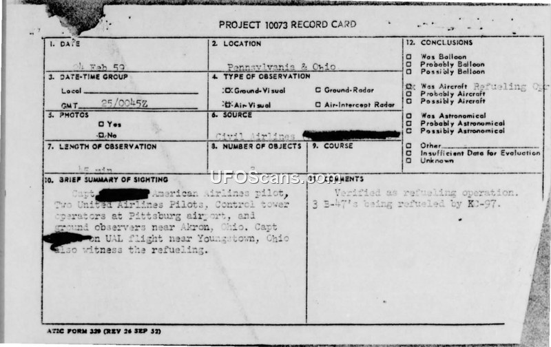 The sighting was determined to be a night aerial refueling operation involving three B-47 aircraft and KC-97 tankers.
