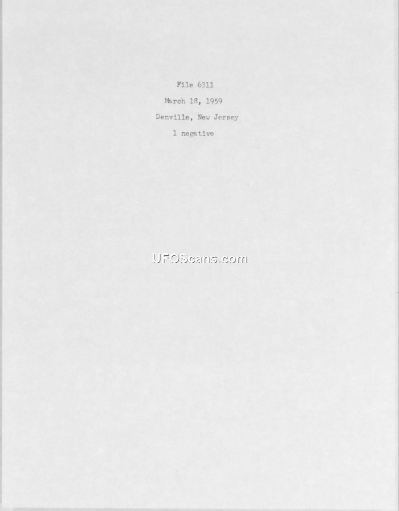 File 6311 documents a photographic record of an unidentified aerial phenomenon observed in Denville, New Jersey, on March 18, 1959. The file includes a single negative and a request for a view graph.