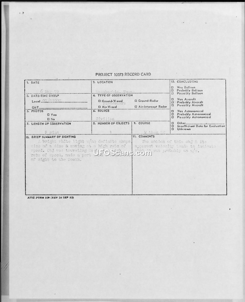 Project 10073 Record Card — Waxahachie, Texas, 6 May 1959