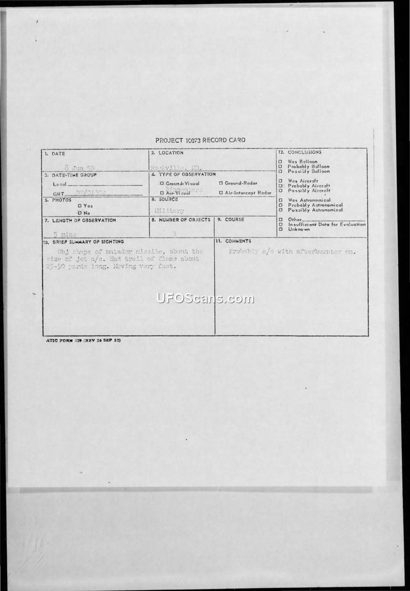 Project 10073 Record Card and Teletype Report — Rockville, Maryland, June 1950