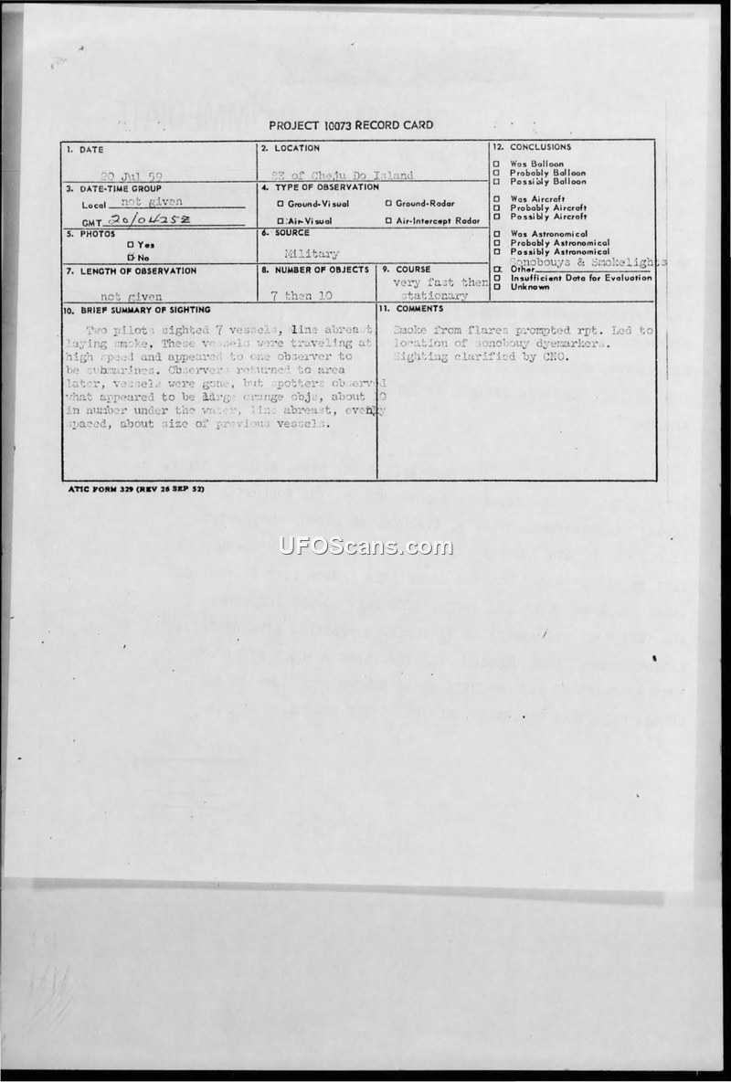 PROJECT 10073 RECORD CARD - Sighting SE of Cheju Do Island
